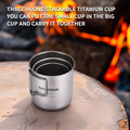This durable round titanium cup is perfect for outdoor adventures, camping, hiking, and travel. Lightweight and corrosion-resistant, it can safely hold boiling water, making it ideal for hot beverages or meals on the go. Designed for outdoor enthusiasts, this reusable cup is a practical and eco-friendly choice for your next trip.
